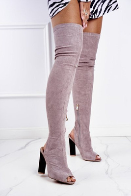 Жіночі високі чоботи замшеві на високому каблуці Lu Boo Grey Aramis