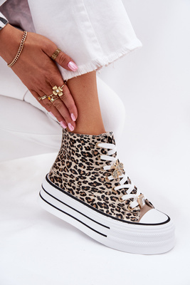 Жіночі Високі Кросівки На Масивній Платформі З Заколками Леопард Золоті Olivana