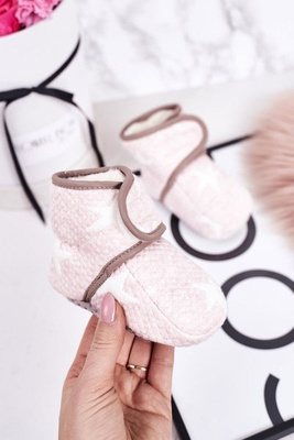 Дитячі снігові черевики з хутром і гудзиком Kawai рожевого кольору