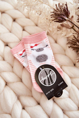 Дитячі смугасті шкарпетки з ведмедиком рожеві