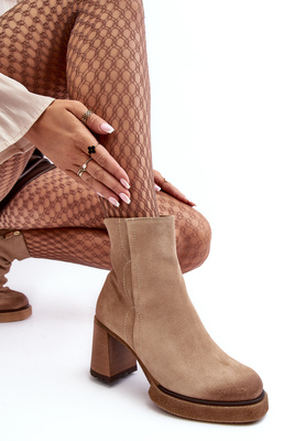 Жіночі замшеві чоботи на каблуці бежеві Lemar Remilda