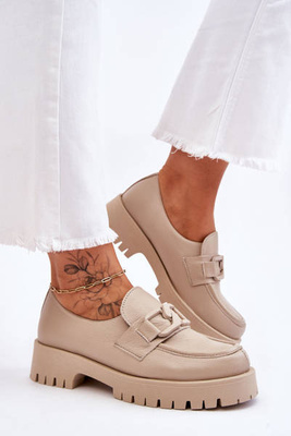 Жіночі лофери шкіряні туфлі Big Star LL274457 Бежеві
