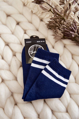 Жіночі бавовняні спортивні шкарпетки в смужку темно-синього кольору