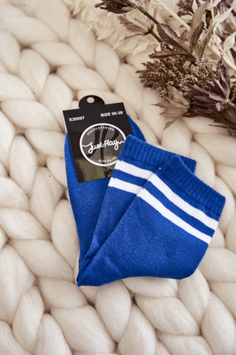 Жіночі бавовняні спортивні шкарпетки в смужку синього кольору