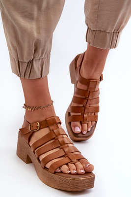 Жіночі шкіряні босоніжки на високих підборах Vinceza 66627 Бежеві