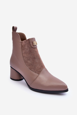 Темно-бежеві черевики Chevie на підборах зі шкіряною підкладкою