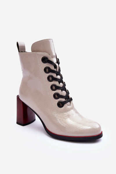 Шкіряні лаковані чоботи на підборах SBarski MR870-58 Темно-бежеві