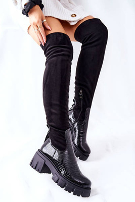 Жіночі високі чорні черевики Lewski Black Suede 2866
