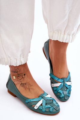 Класичні шкіряні жіночі балетки Maciejka 01358-36 Бірюза