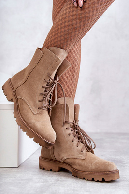 Модні замшеві чоботи на шнурівці бежеві Selma