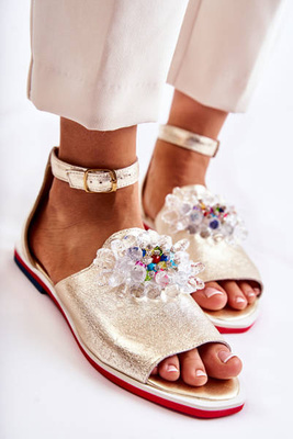 +4Жіночі шкіряні босоніжки з декором Gold Nevassa