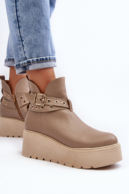 Жіночі шкіряні чоботи на платформі з ремінцями Zazoo 1752 Beige