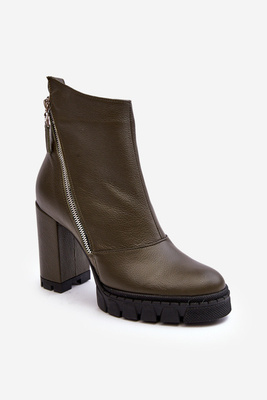 Модні шкіряні чоботи на підборах Laura Messi 2509/195 Темно-зелені