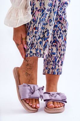 Замшеві жіночі тапочки з бантом Фіолетово-бурштинові
