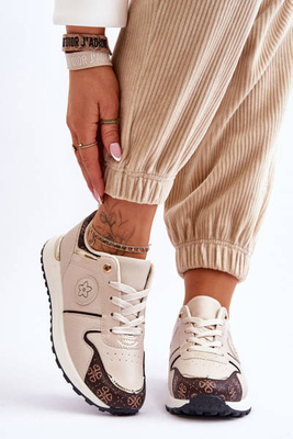 Модне шкіряне спортивне взуття бежево-коричневого кольору Rachel
