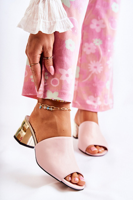 Шкіряні жіночі тапочки на каблуці Рожевий Перрі