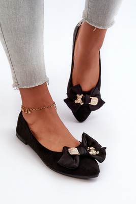 Жіночі балетки з еко-замші з бантом і брошкою Black Satris
