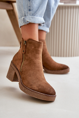 Жіночі ботильйони на підкладці з блоковим каблуком коричневого кольору Velarilla