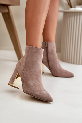 Жіночі чоботи на підборах і блискавці, утеплені еко-замшеві бежеві Mevair