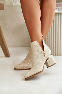 Жіночі чоботи з гострими носами на підборах з прикрасами бежеві Fararia
