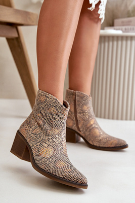 Жіночі ковбойські чоботи із застібкою-блискавкою з тваринним принтом із золотим меризином