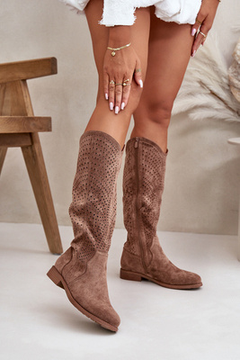 Чоботи з вирізом на підборах коричневі S.Barski HY66-150