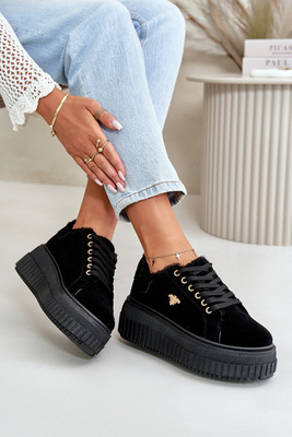 Жіночі утеплені кросівки на масивній підошві з золотистими деталями Чорна лотира