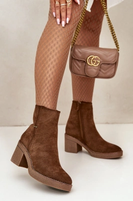 Жіночі чоботи на підборах утеплені еко замша коричневого кольору Arkesia