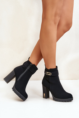 Утеплені жіночі ботильйони на підборах і блискавці чорні Narielis