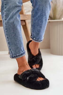 Пухнасті жіночі тапочки на товстій підошві Чорні Лавітера