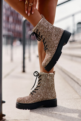 Утеплені жіночі робочі черевики, прикрашені блискітками золотого ліатеїну
