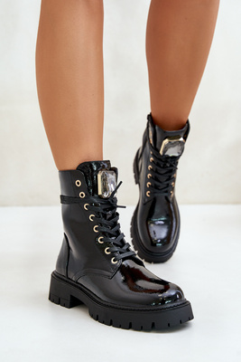 Черевики робітники лаковані утеплені з декором Black Depisa