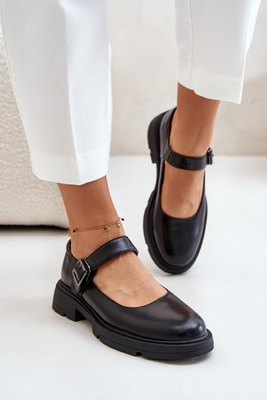 Жіночі лофери з екошкіри з ремінцем чорні Vinceza 62179