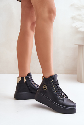 Високі жіночі шкіряні кросівки на платформі Vinceza 66707 Чорні