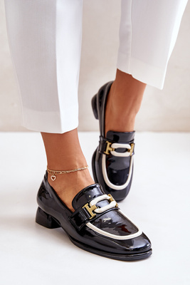 Лаковані жіночі лофери на каблуці чорні Artiker 55C0104
