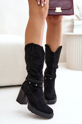 Жіночі чоботи на каблуці утеплені чорні Ivanelis