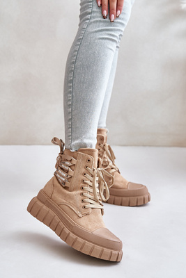 Чоботи жіночі на платформі з декоративною шнурівкою Edidda коричневого кольору