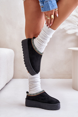 Жіночі тапочки на платформі з вишивкою чорного кольору Neroma