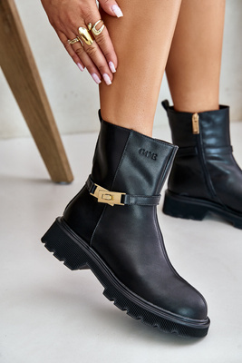 Шкіряні жіночі ботильйони з ремінцем ізольовані GOE OO2N4150 Чорні