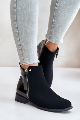 Утеплені ботильйони на плоскому каблуці та низькій халяві чорного кольору Zinariella