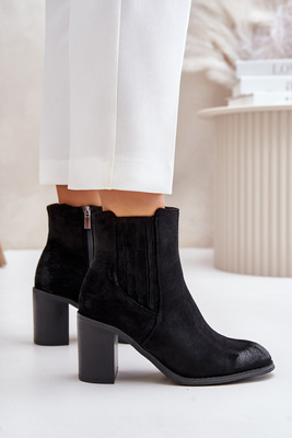 Теплі жіночі ботильйони на каблуці Еко Замша Чорна Гудра