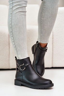 Утеплені ботильйони на плоскій каблуці та декоративному ремінці Чорні Calzina
