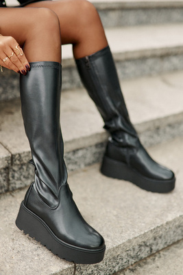 Жіночі високі чоботи на платформі та танкетці чорні Vinceza 58342