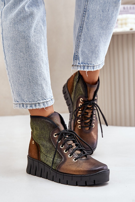 Шкіряні ботильйони на платформі та танкетці Maciejka 06702-09 Зелено-Золотий