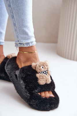 Жіночі тапочки зі штучного хутра з ведмедиком Чорні Румунія