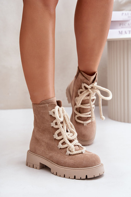 Теплі ботильйони з еко замші на блискавці Caellita бежевого кольору