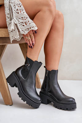Чорні шкіряні утеплені ботильйони Zazoo 60490 з декором
