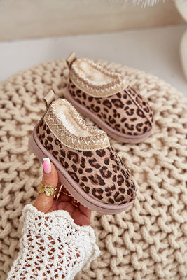Снігові черевики Дитячі ботильйони з леопардовим принтом на платформі, утеплені хутром, коричневі Vilabria