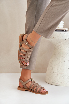Шкіряні сандалі на плоскому каблуці темно-бежеві Зазу 3686