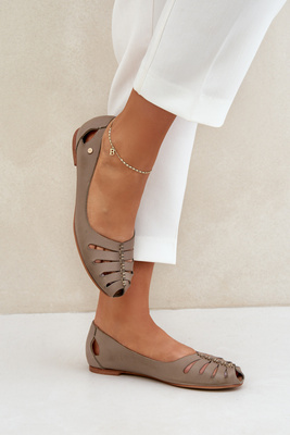 Zazoo 10009 Зручні жіночі шкіряні балерини темно-бежеві